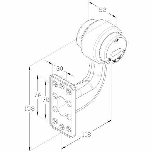 Multivoltage LED breedtelamp te gebruiken tussen de 10 en 30 volt DC. Dit is een kort en haaks model. Voor gebruik aan de rechter zijkant.