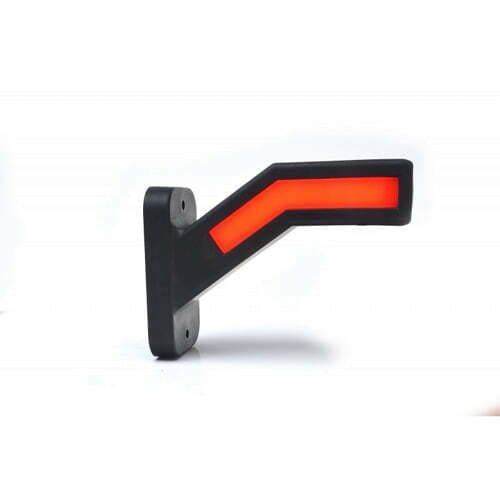 Multivoltage LED breedtelamp te gebruiken tussen de 12 en 24 volt DC. Dit is een blok breedtelamp met een oranje markeringslicht aan de zijkant. Dit type breedtelicht heeft een neon effect/uitstraling. Hij is in het geheel verlicht. Voor gebruik aan de rechter zijkant.